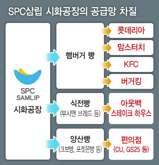 그동안 에스피씨 계열 회사들이 국내 빵 시장에서 차지하는 시장 점유율이 독과점에 가깝게 높아 의존할 수 밖에 없었지만 이제는 대체 공급선을 찾기 위한 움직임이 시작된 셈이다. 한국농수산식품유통공사 식품산업통계정보를 보면, 2023년 기준 빵류 제조업체 매출 상위 10곳 중 에스피씨 계열사 5곳의 매출은 4조3510억원으로 전체 10곳 매출(4조7851억원)의 90%를 차지한다.