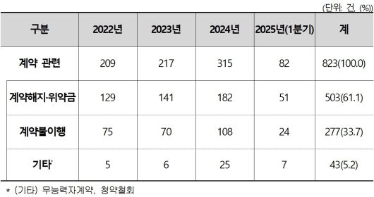 최근 3년간 접수된 계약 관련 피해구제 신청 사유(한국소비자원 제공). 2025.5.30/뉴스1 |