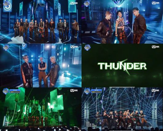 ‘THUNDER’는 다시 태어난 세븐틴이 끊임없이 새로운 영감을 끌어내며 자신들의 세계를 넓혀가는 모습을 천둥과 번개에 빗대 표현한 EDM 기반의 댄스 팝이다. 지난 25일 ‘B-DAY PARTY : BURST Stage @잠수교’에서 선공개된 이 곡 무대는 온라인에서 “중독성이 미쳤다”, “머리 속에서 후렴이 자동 재생된다” 등의 호평과 함께 신곡 흥행에 불을 지폈다.