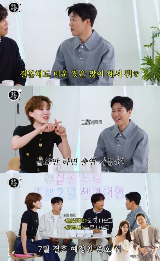 특히 차태현은 "속으로 걱정한 게 준호 형도 그럼 '돌싱포맨' 못 나가고 '미우새'도 못 나가고, 상민이 형 결혼한다길래 거기도 '미우새'도 못 나가고 '돌싱포맨'도 못 나가고. '돌싱포맨'은 없어지는 거야?"라고 '돌싱포맨'의 하차설을 제기하기도 했다.