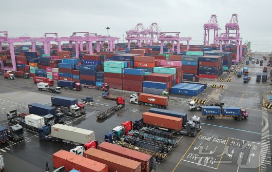 16일 인천시 연수구 인천신항에서 컨테이너 상·하역 작업이 이뤄지고 있다. (자료사진) /뉴스1 |