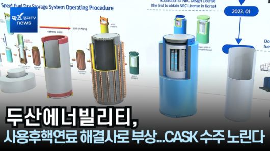 두산에너빌리티는 2023년 한국수력원자력으로부터 200억원 규모의 '사용후핵연료 건식저장시스템(Cask) 종합 설계용역'을 수주했고 오는 9월 원자력안전위원회에 설계 승인 신청을 앞두고 있습니다.