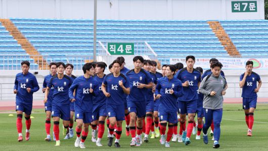 ▲ 지난 19일 강원 원주종합운동장에서 열린 대한민국 20세 이하(U-20) 축구대표팀 소집훈련에서 선수들이 몸을 풀고 있다.