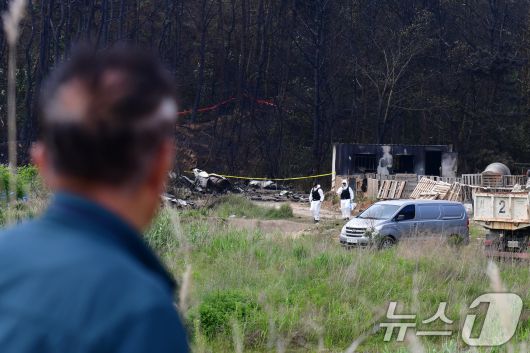 30일 오전 군 항공사고 조사관들이 경북 포항시 남구 동해면 야산에서 해군 해상초계기 추락사고를 조사하고 있다. 2025.5.30/뉴스1 ⓒ News1 최창호 기자 |