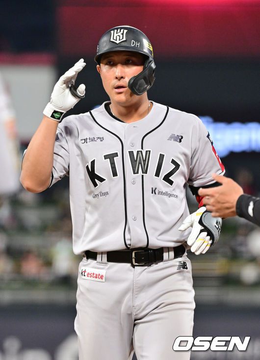 황재균은 0-0으로 맞선 3회말 무사 1루에서 1루수 야수선택으로 출루했다. 이어 배정대의 볼넷으로 2루에 진루한 뒤 2사 후 나온 멜 로하스 주니어의 중전 적시타 때 홈을 밟아 0의 균형을 깨는 선취 득점을 올렸다.