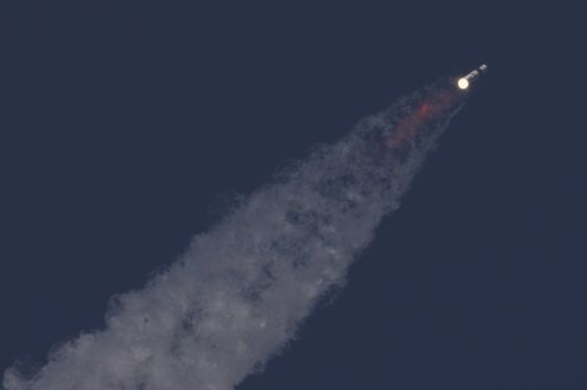 27일(현지시간) 미 텍사스주 보카치카 인근 스페이스X 스타베이스 발사대에서 '스타십' 로켓이 발사되고 있다. 이날 스타십의 9번째 지구궤도 시험비행은 실패로 끝났다. 뉴시스 제공 |