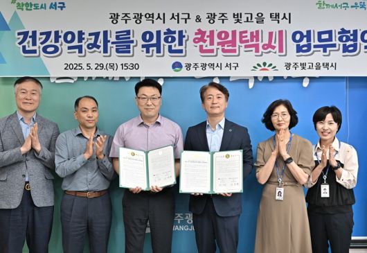 서구는 “지난 29일 광주빛고을콜택시와 천원택시 사업에 관한 업무협약을 체결했다”고 30일 밝혔다. 지원 대상은 의료급여 산정특례 대상자(기초의료급여 1종) 360여명이다. 중증 암·난치(희귀)성 질환자, 결핵 및 중증 화상환자 등이 포함된다.