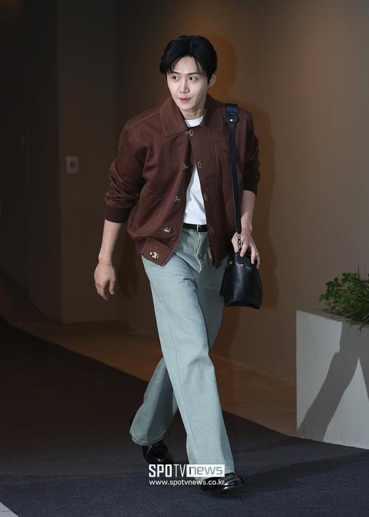 넷플릭스 '폭싹 속았수다'에서 금명(아이유)의 남편 충섭 역으로 깊은 인상을 남겼던 배우 김선호는 이날 브라운 재킷과 연청 와이드 팬츠 조합으로 빈티지하면서도 세련된 분위기를 연출했다.