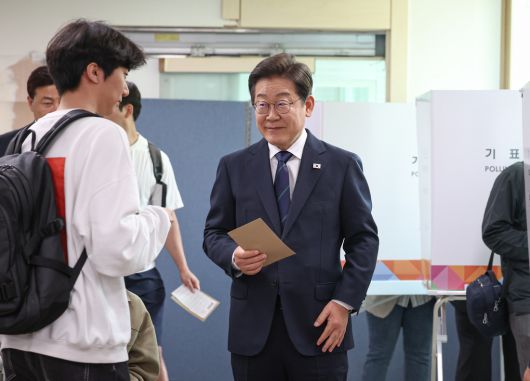 이재명 더불어민주당 후보가 29일 서울 서대문구 구 신촌동주민센터 사전투표소에서 청년들과 함께 사전투표를 하고 있다. 더불어민주당 제공 |