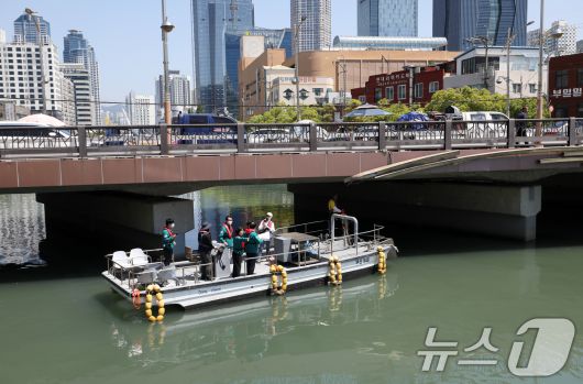 (부산=뉴스1) 윤일지 기자 = 30일 부산진구청 관계자와 전문가 등이 선박을 타고 부산 동천 무지개다리 하부에서 안전점검을 하고 있다. 2025.5.30/뉴스1yoonphoto@news1.krCopyright ⓒ 뉴스1. All rights reserved. 무단 전재 및 재배포, AI학습 이용 금지.