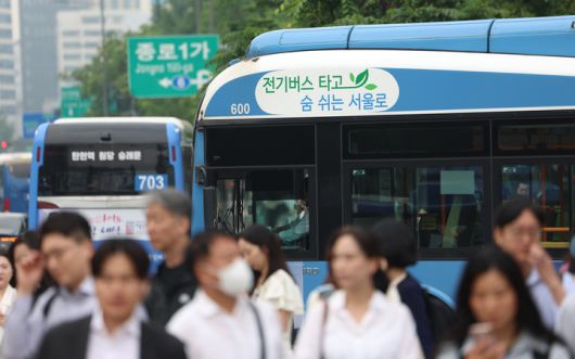 서울 종로구 세종로사거리에서 버스에서 하차한 시민들이 횡단보도 신호를 기다리고 있다. |