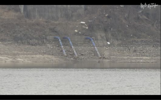 위 사진은 낙동강 현풍 양수장의 취수구다. 보가 개방돼 수위가 낮아지자 취수구는 물 밖으로 드러나 농업용수를 뽑아올릴 수 없는 상태가 됐다. 이대로는 농사를 지을 수 없기 때문에, 보를 열어 물 흐름을 유지하면서 농업용수를 확보하려면 취수구를 더 깊고 길게 만드는 공사가 필요하다.