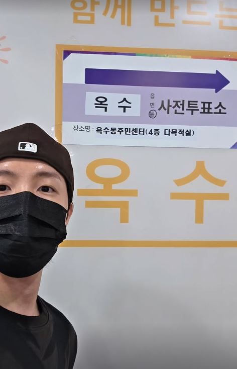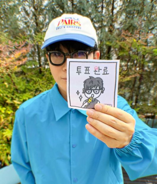그는 "다른 날보다 일찍 일어났다. 평화를 일구고 경제를 일으킬 유능한 일꾼을 뽑는다는 일념에 가슴이 일렁인다"라는 글과 함께 '투표 완료'가 적힌 종이를 들고 사진을 찍었다. 역시나 파란색 계열의 의상이 시선을 사로잡았다.