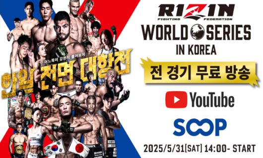 [SWTV 스포츠W 임재훈 기자] 오는 31일 인천 영종도에 위치한 파라다이스시티에서 개최되는 격투기 이벤트 ‘라이진 월드 시리즈 인 코리아(RIZIN WORLD SERIES in KOREA)’의 전 경기가 오는 31일 토요일 SOOP과 유튜브를 통해 무료 생중계 된다고 주최사인 라이진(RIZIN FIGHTING FEDERATION)이 30일 밝혔다.