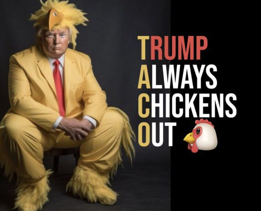 최근 트럼프 대통령은 백악관 집무실에서 기자들로부터 월가에서 타코 트레이드라는 말이 돌고 있다는 질문을 받기도 했다. 트럼프는 설명을 듣고는 "나는 겁먹지 않는다"며 "협상이라고 부르는 것"이라고 정색했다.