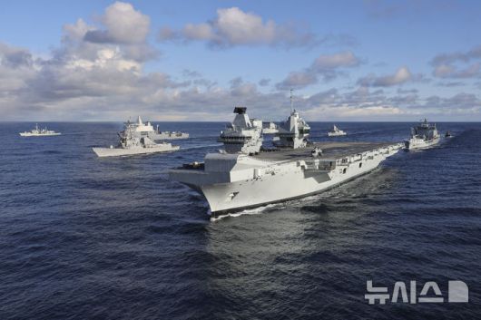 [AP/뉴시스] 영국 해군은 29일(현지 시간) 아우터헤브리디스 제도에서 러시아 정보수집함을 감시하기 위해 HMS 드래곤과 멀린 헬리콥터를 기동했다고 밝혔다. 사진은 올해 1~2월 나토의 '스테드패스트 다트' 연합 훈련에 참여하고 있는 영국의 HMS 프린스오브웨일즈 항공모함의 모습. 2025.05.30. |