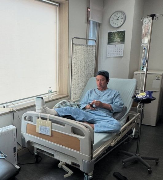 엄태웅은 30일 자신의 소셜 미디어에 별다른 설명 없이 사진 한 장을 게재했다. 공개된 사진에는 오른쪽 다리를 깁스하고 얼음 주머니까지 동여맨 엄태웅이 인상을 쓰고 있는 모습이 담겼다. 엄태웅 뒤로 놓여진 목발도 눈에 띈다.