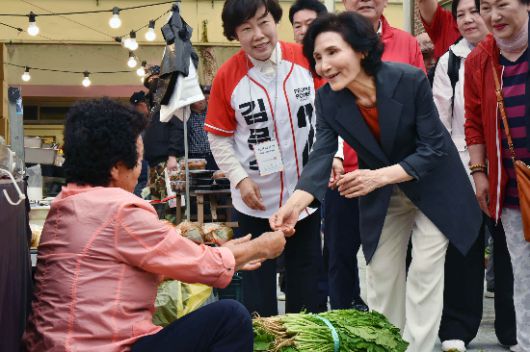 김문수 국민의힘 대통령 후보의 배우자 설난영 씨가 전남 순천시 풍덕동 아랫장을 찾아 시민과 인사하고 있다. (매경 DB) |