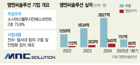 2020년 두산그룹이 두산모트롤을 매각할 당시에는 방산부분이 민수부분에 밀려 전체 매출의 20%에 불과했다. 그러나 소시어스PE·웰투씨인베가 인수 분할하면서 방산부문은 군납 이외 민간 방산기업으로 거래쳐를 넓혀 실적이 가파르게 상승하고 있다. 엠앤씨솔루션의 매출은 2021년 1259억 원에서 2024년 2827억 원으로 올랐고, 같은 기간 영업이익은 115억 원에서 345억 원으로 상승했다. 올해 1분기에는 매출 751억 원과 영업이익 95억 원으로 분기 기준 최대치를 기록했다.