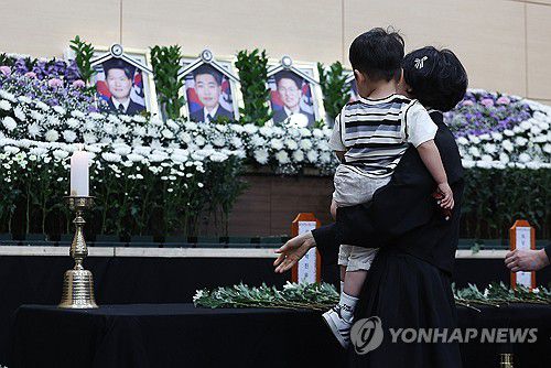 순직 해군 배웅하는 어린 아들 |
