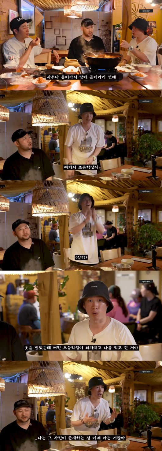 투컷은 “그 찜질방을 가자고 한 게 나였다. 그때 나한테 ‘너 때문에 여기서 사진 찍혔다’고 했다”고 말했고, 타블로는 “그때 내가 멘붕이 온 게. 그때 내가 예능 제일 많이 할 때였다. 시트콤 나올 때야. 내가 옷을 바지부터 벗고, 티셔츠를 벗으니까 얼굴이 잠깐 가려졌다. 내리자마자 초등학생이 ‘찰칵’하고 도망갔다. 내가 벌거벗은 채로 찾아다녔는데 못 찾았다”고 털어놨다.