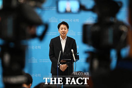 [더팩트ㅣ국회=배정한 기자] 이준석 개혁신당 대선 후보가 30일 오후 서울 여의도 국회 소통관에서 긴급 기자회견을 열고 입장을 밝히고 있다.