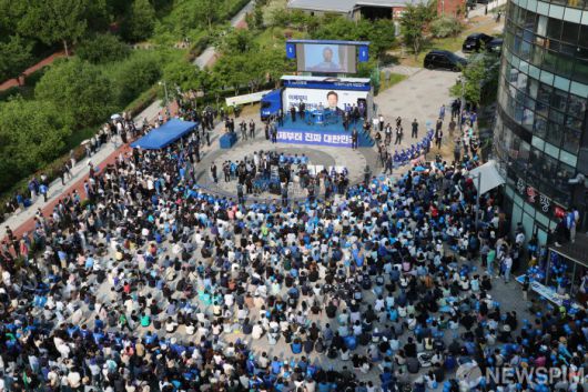 [원주=뉴스핌] 정일구 기자 = 이재명 더불어민주당 대선 후보가 30일 오후 강원 원주시 원주행복마당에서 열린 원주 유세에서 연설을 하고 있다. 2025.05.30 mironj19@newspim.com