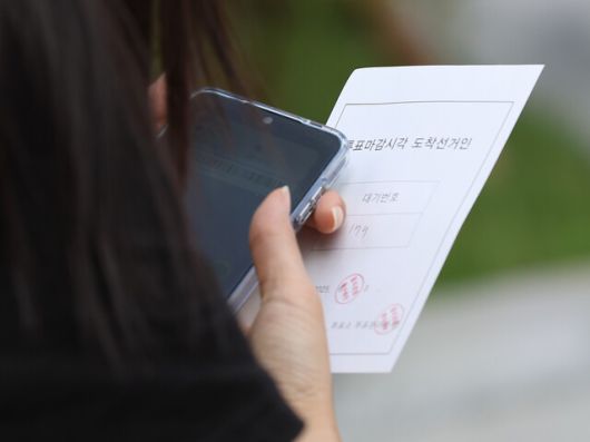 제21대 대통령선거 사전투표 둘째 날인 30일 서울 중구 을지누리센터에 마련된 사전투표소에서 투표하지 못한 한 유권자가 대기표를 들고 투표 순서를 기다리고 있다. 연합뉴스 |