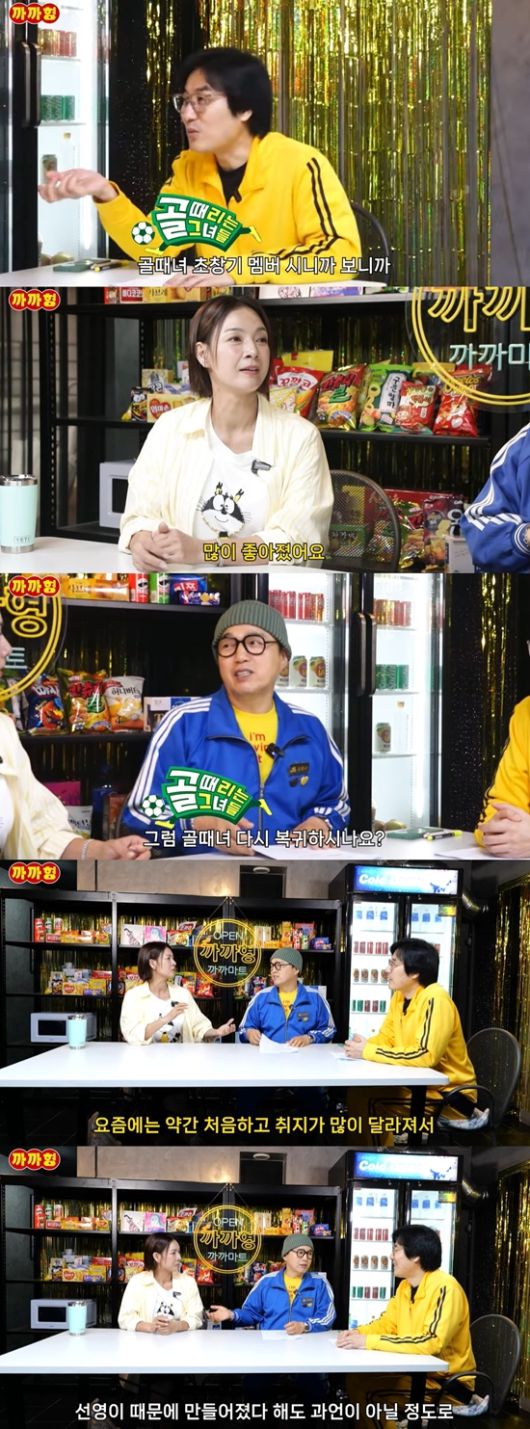 이에 김광규가 "그럼 '골때녀' 다시 복귀하시나요"라고 물었다. 박선영은 "근데 요즘은 처음하고 취지가 많이 달라졌다. 처음에는 팀의 색깔이 있었다. 요즘은 그걸 떠나서 그냥 잘하는 친구를 막 여기저기 집어넣다 보니까 좀 아쉽다"며 '골때녀'에 대한 생각을 밝혔다.