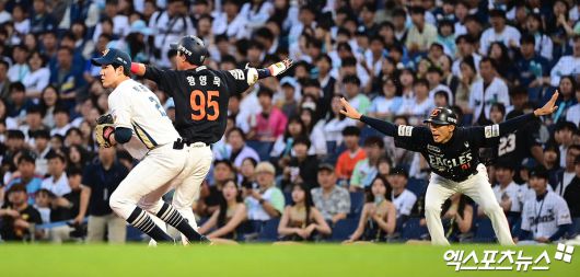 (엑스포츠뉴스 창원, 박지영 기자) 30일 오후 경상남도 창원NC파크에서 열린 '2025 신한 SOL Bank KBO리그' 한화 이글스와 NC 다이노스의 경기, 3회초 1사 1루 한화 황영묵이 내야안타를 때려낸 뒤 1루에서 세이프 되고 있다.박지영 기자 jypark@xportsnews.com