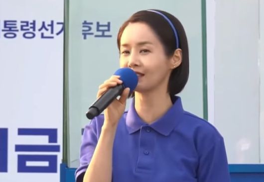 이재명 대선 후보 지지연설에 나선 배우 김가연. [유튜브 캡쳐] |