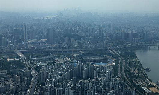 지난 26일 서울 송파구 롯데월드타워 전망대 서울스카이에서 바라본 서울 송파구와 강남구, 서초구 아파트. 뉴시스 |