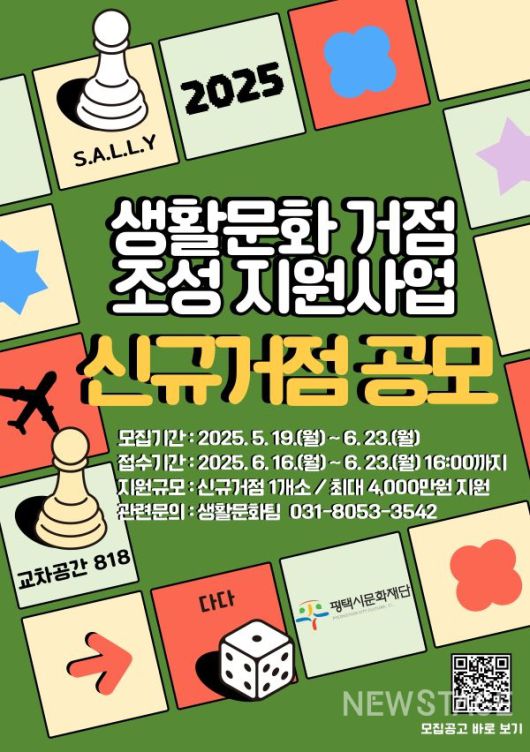 평택시문화재단은 오는 23일까지 '2025년 생활문화 거점 조성 지원사업' 신규거점 모집에 참여할 역량 있는 단체를 모집한다고 밝혔다.