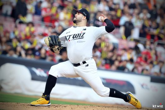 헤이수스는 30일 수원KT위즈파크에서 열린 2025 신한 SOL Bank KBO리그 KIA 타이거즈와의 시즌 7차전에 선발 등판해 7이닝 4피안타 1사사구 9탈삼진 무실점으로 시즌 두 번째 퀄리티스타트 플러스(선발 7이닝 이상 3자책점 이하) 및 시즌 4승째를 수확했다.