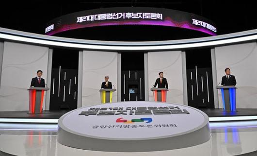18일 중앙선거방송토론위원회 주관으로 서울 마포구 SBS프리즘타워에서 열린 제21대 대통령선거 후보자 토론회에 참석한 후보들이 준비를 하고 있다. 뉴시스 |