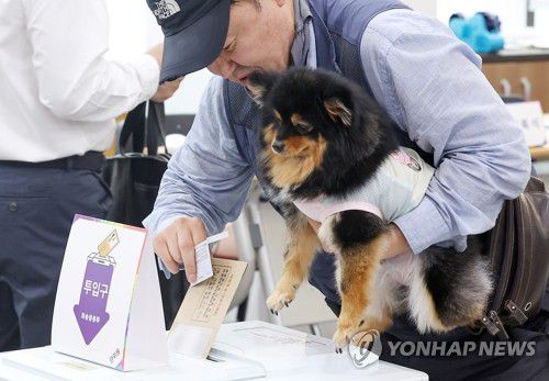 중앙선관위 관계자는 "장애인 안내견 외의 반려동물은 원칙적으로 투표소 출입이 제한되지만 현장 여건에 따라 예외적으로 유연하게 대응하고 있다"고 밝혔다.