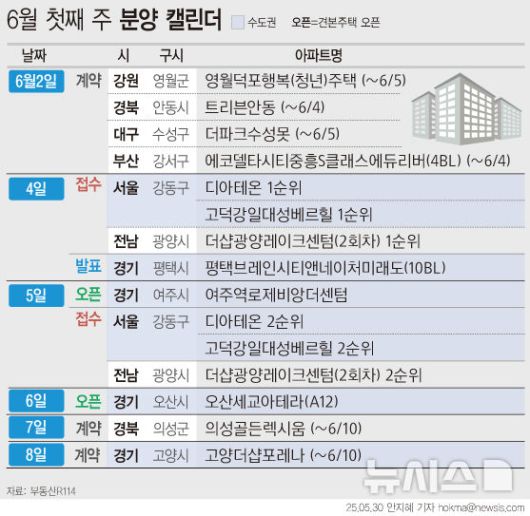[서울=뉴시스]정진형 기자 = 부동산R114는 6월 첫째 주 전국 3개 단지 총 885가구가 분양을 시작한다고 31일 밝혔다. 모두 일반분양 물량이다.