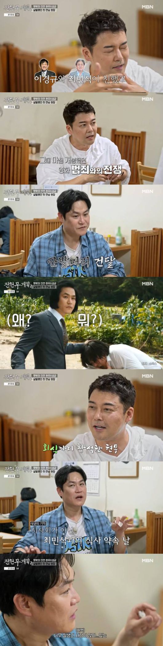 전현무는 "내가 아나운서 마지막 해 일 때 '남자의 자격'을 할 때, 경규 형님이 최민식 형님이랑 친했다. 같은 학교여서"라며 인맥 연결고리를 언급했다.