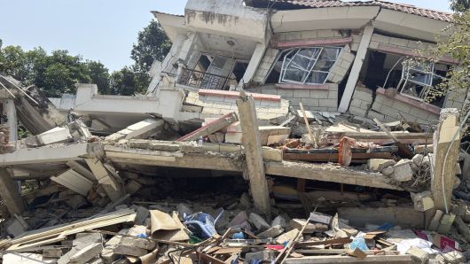 미얀마 지진의 여파로 피해를 입은 건물 (AP 연합뉴스)