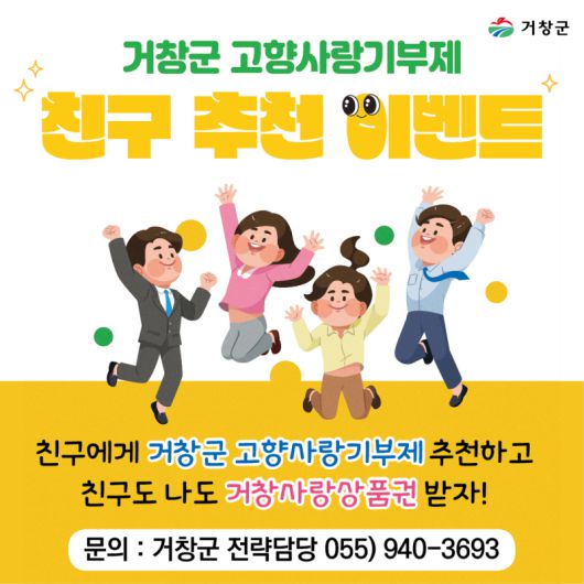 ◆거창 고향사랑기부, 친구 추천 이벤트 추진