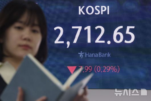 [서울=뉴시스] 홍효식 기자 = 코스피가 전 거래일(2720.64)보다 7.40포인트(0.27%) 하락한 2713.24에 개장한 30일 오전 서울 중구 하나은행 딜링룸 전광판에 지수가 표시되고 있다.코스닥 지수는 전 거래일(736.29)보다 1.03포인트(0.14%) 내린 735.26에 거래를 시작했다. 서울 외환시장에서 원·달러 환율은 전 거래일 주간거래 종가(1375.9원)보다 4.9원 내린 1371.0원에 출발했다. 2025.05.30. yesphoto@newsis.com |