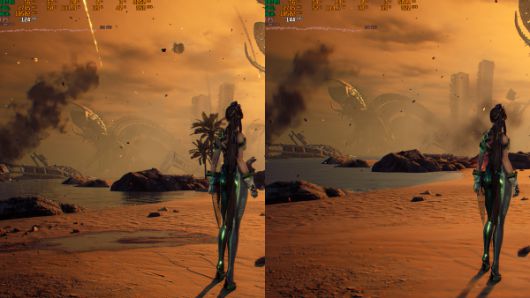 이 때 스텔라 블레이드 PC 버전은 엔비디아의 최신 기술인 DLSS 4.0을 지원한다. 프레임 생성 기능을 포함한 DLSS 품질 옵션을 활성화할 경우 최대 190~200프레임에 달하는 퍼포먼스를 보여줬다.