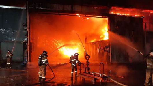 [영천=뉴시스] 30일 오후 11시41분께 영천시 도남동의 폐기물재활용 공장 소각장에 화재가 발생했다는 신고가 접수됐다. (사진=경북소방본부 제공) 2025.05.31. photo@newsis.com *재판매 및 DB 금지 |