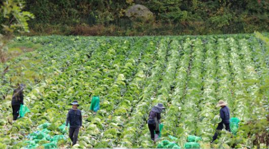 지난해 10월9일 강원 평창군 대관령 일원에서 배추 출하 작업이 진행 중이다. 연합뉴스 |