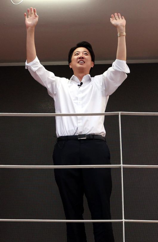 이준석 개혁신당 대선후보가 지난 30일 오후 서울 서대문구 신촌 유플렉스 앞에서 열린 유세에서 시민들에게 인사를 하고 있다 . 뉴시스 |