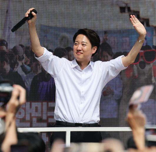 이준석 개혁신당 후보가 31일 오후 경기 안양시 평촌로데오거리에서 유세하고 있다. [사진제공=뉴스1] |