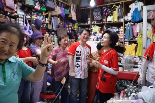 [서울=뉴시스] 고승민 기자 = 안철수 국민의힘 공동선대위원장과 설난영 여사가 31일 서울 은평구 대림골목시장을 찾아 유세를 하고 있다. (사진=안철수 의원실 제공) 2025.05.31. photo@newsis.com *재판매 및 DB 금지