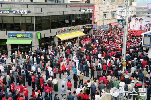 [울진=뉴스핌] 남효선 기자 = 31일 오후 경북 울진군청 앞 사거리에서 열린 국민의힘 김문수 대선 후보 유세장에서 울진 출신인 국힘 중앙선대위 주호영 공동선거대책위원장(대구 수성갑)이 "김문수 후보 지지"를 호소하고 있다. 이날 울진군청 앞 사거리에서 열린 유세에는 울진을 비롯 의성.청송.영덕지역 국힘 당원과 주민 1200여명이 참여해 '대통령 김문수'를 연호했다. 이날 유세에서 김문수 후보는 박형수 의원이 유세장에서 건의한 △산불피해 완전 복구 △울진 원자력수소국가산단 성공적 조성 △대구.경북신공항 건설 등 현안을 완전하게 해결하겠다며 지지를 호소했다. 이 후보는 또 "6월3일 대통령에 당선되면 추가경정예산 30조를 만들어 산불 피해 지원을 제1번으로 보상하도록 하겠다"고 강조했다. 이날 유세에는 박형수 의원(경북도당위원장,의성.청송,영덕.울진), 국힘 중앙선대위의 주호영 공동선거대책위원장(대구 수성갑), 송언석 '김문수 진짜경제팀' 경제대책위원장(김천), 임이자 의원(상주·문경), 임종득 의원(영주·영양·봉화) 등 TK권 국힘 의원들과 후보 비서실장인 김재원 최고위원 등이 대거 참여해 힘을 실었다.2025.05.31 nulcheon@newspim.com