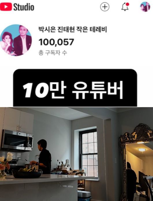 진태현은 지난 30일 개인 SNS에 아내 박시은과 운영 중인 유튜브 채널 '작은 테레비'의 구독자가 10만 명을 돌파하고 10만 57명에 이른 순간을 포착해 사진으로 게재했다. 이와 관련 그는 "10만 유튜버"라는 짧은 글을 덧붙여 꾸준히 동영상을 게재해온 유튜브 채널의 근황으로 주위의 축하를 받았다.