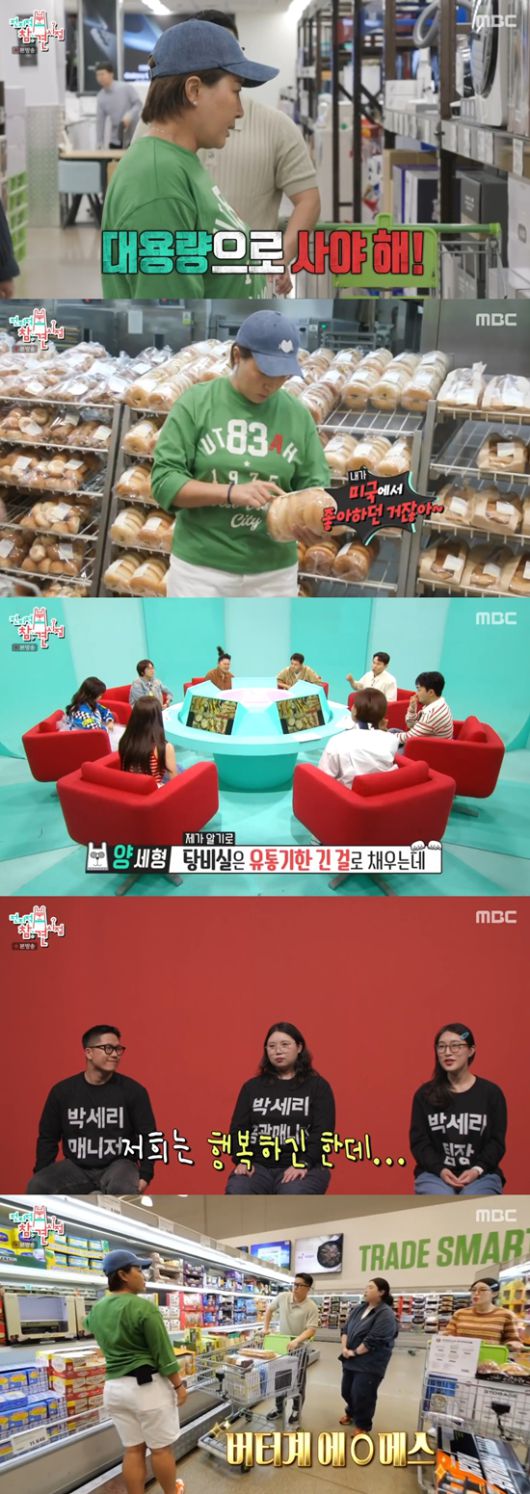 박세리는 "여기 빵도 맛있다. 베이글도 들어왔다. 이거 내가 미국에서 좋아하던 거다. 이걸 샀으면 크림치즈도 사야 한다"고 밝혔다. 양세형은 "탕비실은 유통기한 긴 걸로 넣는다고 알고 있는데, 즉석으로 넣고 계신다"고 말했다. 박세리는 "그럴 일이 없을 거다. 바로바로 먹을 거다"며 자신감을 보였다.